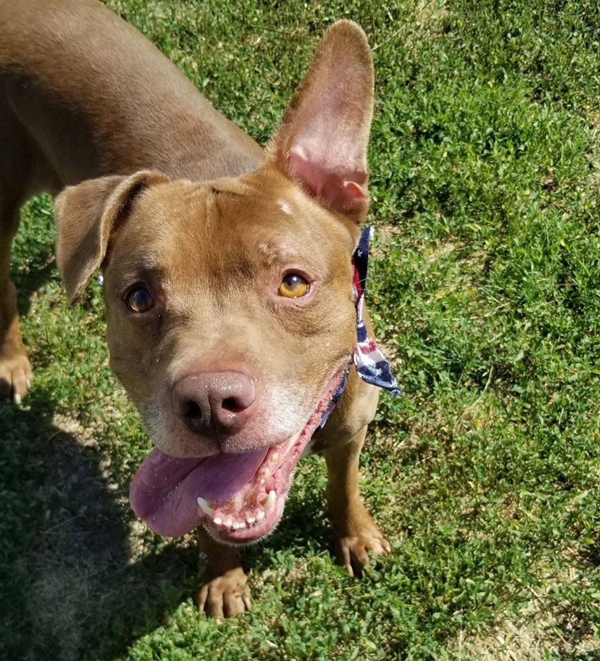 “Hi I’m Tank! I’m about six years old and as you can see by my pictures I’ve got one cute sticky up ear, a happy smile, a curly tail, and a curious sense of the world around me. I’m a sweet and silly boy. I like playing with toys, going on walks, and eating treats. If you pick me for your one and only I promise to make you laugh and smile forever. I am looking for a home with NO other pets and NO children.” You can check out Tank’s PetFinder bio here!